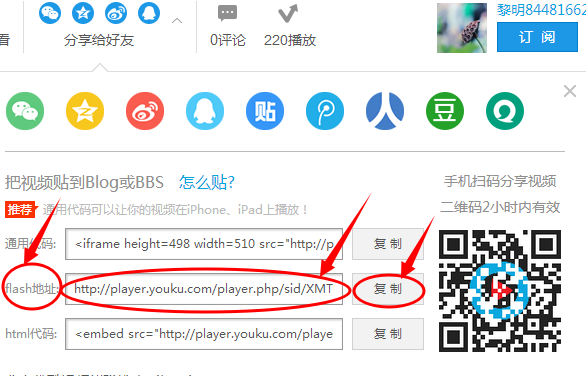 第二步,将已成功发布在优酷网上的视频转发到日志中