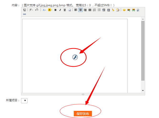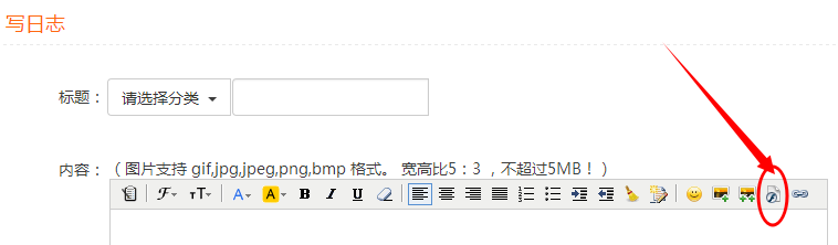 2、 登录“伊利方舟安全生态校”网站,进入写日志页面,内容栏倒数第二个图标即为上传Flash图标,如下图