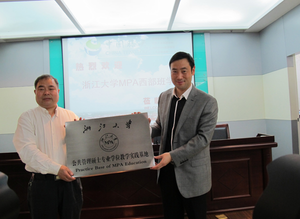 座谈会结束时,隆重举行了“浙江大学MPA(公共管理硕士)教育中心滕头村教学实践基地”挂牌仪式,徐林主任和刘松江副书记共同为基地揭牌。