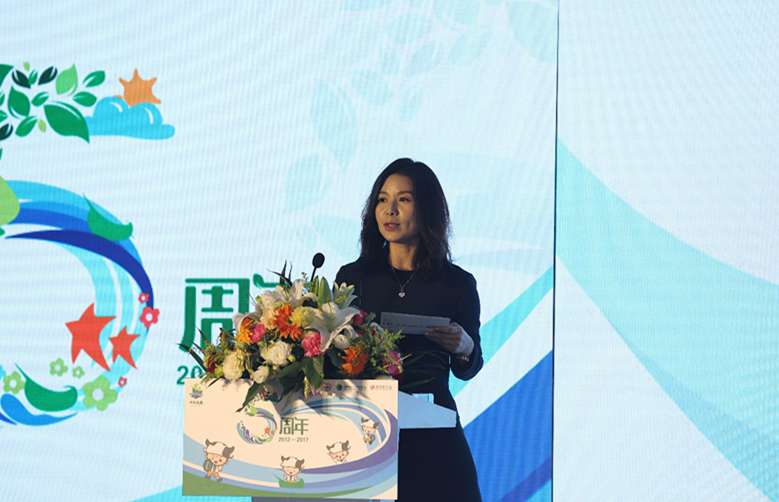 戴桂英在致辞中指出,“伊利方舟”从2012年开始启动到今天的五周年,是一个里程碑,许多人为此付出了巨大地努力。五年来通过这个平台,提升了西部地区20多万名孩子的安全意识,孩子们的自身安全得到了进一步保障。为39个县培养了儿童安全的 “伊利方舟”导航师,携手社会各界组织了70多场儿童安全教育活动。2015年该项目得到了国务院副总理刘延东同志的批示和肯定,“伊利方舟”已经成为中国社会儿童安全最鲜亮的品牌。