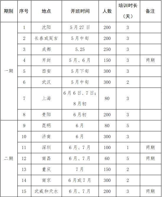 附:“腾讯公益数字人才开放计划”专场培训班分布表